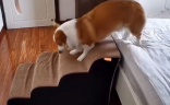 ベッドから降りる犬の動きが…まるで休み明けの朝のようなとき