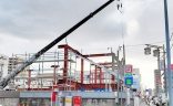 店舗建て替えのため休業中のびっくりドンキー春日井店。早くも新店舗の鉄骨が出現。新店舗は旧国道19号線側...