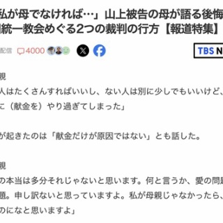 【安倍元総理銃撃事件】山上母「私が母親じゃなかったらよかった」「事件で信仰心はより強くなった」
