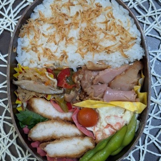 作った後の夫のお弁当とりあえずの栄養のバランス面を考えてはいるけどどういう視点で見るかというとその時によって様々でもある昨日の記事のお弁当が”ちょっと寂しそう”だったので今日は”まあまあ楽しそう”に見えるなといった感じささみカツタレ和え枝豆ポテトサラダとミニトマト切り干し大根煮焼きパプリカポン酢焼き豚大葉 皆さんが笑顔でいれますようにいつもありがとうございます読者登録はこちら