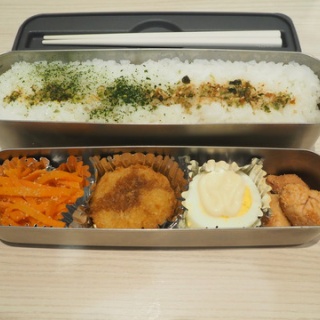 今日のお弁当です。(^^)Windows 10のサポートが10月14日に終了しました。私は古いPCは、1年間延長の処理をしました。新しいPCは、Windows 11にアップグレードしました。でも、現在使用されているWindowsの中で40%はWindows 10のようです。最近はランサムウェア感染のニュースが頻繁が流れています。感染してからでは遅いので少しでも予防できる対策を講じた方がいいですよね。では、いただきます。Windows 10への対策は一応終わったので保冷お弁当箱です。(^^)今日のおかず達です。人参、メンチカツ、ゆで卵、焼きたらこです。メンチカツは、冷凍で自然解凍なんですが意外と美味しいです。(^^)お弁当にはピッタリですね。今日のご飯です。ご飯の上にあるのは、青菜ふりかけとかつおふりかけです。最近、この組み合わせが多いですね。ちょっとネタ切れかも・・・(^^)ご飯の中は?ご飯の中も鮭ふりかけです。まぁ美味しいからいいのですが。(^^)今日もお腹いっぱいです。(*^^)vごちそうさまでした。(^O^)/