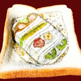 今日の食パンアート「ミックスサンド弁当」これも2月に作ってイマイチ蔵で眠ってたもんだす。作り直そかと思てたけど、取敢えず何でも放出!ちゅうことで見苦しぃのは大目に見たってちょ😉 ↓【制作工程】↑バターナイフを使って彫描き ↓竹炭で細部描き入れ&立体感出し↑ビーツ・グリーンスムージーの素・かき氷シロップ(ブルー)アイシングパウダー(青)漬物の汁・インスタントコーヒーを加えて全体を色付け↑裏面 ↓艶出しのマヨネーズと蜂蜜を塗って完成