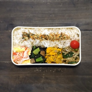 今日のお弁当です。(^^)また、福岡市で人が刺されたようです。今回は男女2人が刺され、犯人は逃走中との事です。何か恨みでもあったのか、または無差別なのか・・・。人を刺せば亡くなってしまう可能性が高いです。何の為に刺すのでしょかね。では、いただきます。今日のおかず達です。かぼちゃ、玉子焼き、味噌カツ、豚肉の生姜焼きです。かぼちゃもちょっと濃いめの味付けなのでお弁当のおかずに合いますね。甘く過ぎないのが肝ですね。(^^)今日のご飯です。ふりかけ付きですね。今日のふりかけです。鰹みりん焼です。鰹の風味とみりんのコクのある甘さが美味しいですね。(^^)今日もお腹いっぱいです。(^^)vごちそうさまでした。(^^)/