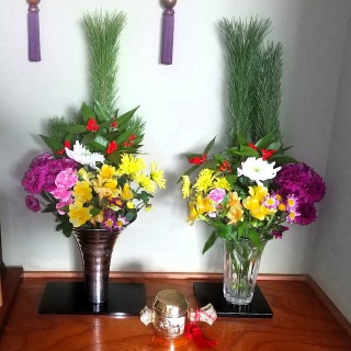 新年あけましておめでとうございます。画像は新栄寺です。夫と息子、家族3人で初詣に行ってきました。 息子へのお言葉をくださいとおみくじを引くと大吉でした。ありがたいお言葉をありがとうございます。 我が家の床の間です。 掛け軸には今年の干支の馬の色紙です。 「一騎当千(いっきとうせん)」は、一人で千人もの敵と戦えるほど強いことを表す四字熟語です。転じて、一人で多くの役割や困難をこなせるほど抜きん出た能力を持つ人を指すこともあります。 干支の置物は、大神神社で拝受したものです。お守りもついていました。 正月花は、豊川ダキニ真天様と、仏様のお花2つです。 我が家のしめ飾りです。蘇民将来子孫のしめ飾りです。 鏡餅は手作りです。もち米1キロでちょうど、12個作ることができました。 大神神社でいただいたお屠蘇です。屠蘇は千年の昔から伝わる薬で、鬼や悪い病を払う意味で、このお薬を酒に浸して元旦にいただくと、年中病気をしないと言われています。 おせちです。黒豆だけを作りました。 我が家のお雑煮です。すまし汁仕立てです。 神様、仏様に、お雑煮とおせちをお供えしました。 家族で穏やかなお正月を過ごしています。 今年は安心できる年にしたいものです。 皆様にとって、良い一年になりますようにお祈りいたします。 今年もどうぞよろしくお願いいたします。