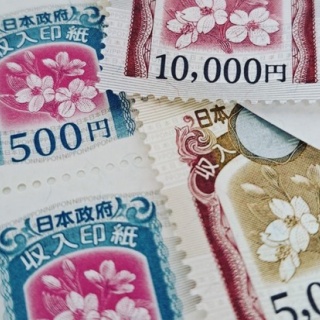 【収入印紙】収入印紙は国が発行する証票で、印紙税や手数料を納付するために使用されます。契約書や領収書など一定の金額以上の取引を行う際に作成される「課税文書」には、印紙税が課税されます。収入印紙を貼ることで、その文書に対する印紙税の納付を証明することができます。収入印紙が必要なケース契約書:不動産売買契約書、金銭消費賃貸契約書、請負契約書など領収書:5万円以上の領収書には収入印紙が必要です。収入印紙の購入方法郵便局、法務局、一部のコンビニエンスストアなどで購入できます。【収入印紙の価格】・5万円未満は非課税(必要なし)・5万円以上〜100万円以下は200円分の収入印紙・100万円超〜200万円以下は400円分の収入印紙・200万円超〜300万円以下は600円分の収入印紙・300万円超〜500万円以下は1,000円分の収入印紙・500万円超〜1,000万円以下は2,000円分の収入印紙 【収入印紙の貼り方と消印】貼り方・収入印紙は切手のように裏面に糊がついており、貼る場所は契約書であればタイトルの横や署名欄など、文章の余白部分が一般的です。領収書の場合は貼り付け欄が設けられていることもあります。・複数枚の収入印紙を貼る場合は、上下左右に並べて貼ると見やすいでしょう。・収入印紙を貼る際には、文章と印紙がしっかりと接着するように軽く押さえるようにしましょう。消印・収入印紙を貼った後、必ず消印を押す必要があります。・消印は収入印紙と文章の両方にまたがるように押します。(割印)これにより印紙が使用済みであることを示す役割があります。・消印には契約書に押印した印鑑や社判を使用するのが一般的です。