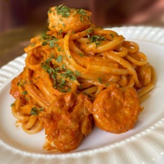 【にじさんじ】トラウトシェフ、ランチに手料理のエビのクリームパスタ「殻付き海老を買ってアメリケーヌソースを作る所から。皆さんは店に行きましょう。」
