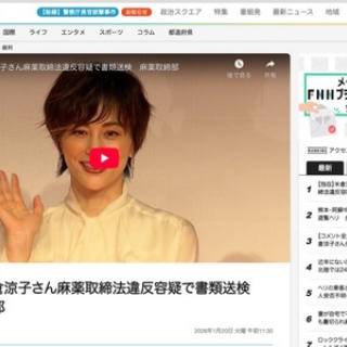 1: 少考さん ★ 2026/01/20(火) 14:55:25.00 ID:Xw5yXEeC9 【独自】米倉涼子さん麻薬取締法違反容疑で書類送検…関係先から違法薬物押収されアルゼンチン男性と共に関与の疑い 麻薬取締部|FNNプライムオンライン https://www.fnn.jp/articles/-/989668
