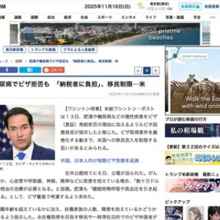 1 : 【ワシントン時事】米紙ワシントン・ポストは13日、肥満や糖尿病などの慢性疾患をビザ(査証)発給拒否の理由に加えるようルビオ国務長官が指示したと報じた。ビザ取得要件を厳格化する動きで、米国への移民流入を制限する狙いがあるとみられる。 在外公館宛てに6日、公電が送られた。がんや糖尿病のほか、心血管や呼吸器、神経、精神などに疾患を抱えている場合、「数十万ドル(数千万円)相当の治療が必要となる」と指摘。肥満も「睡眠時無呼吸や高血圧を引き起こす恐れがある」として、ビザ審査で考慮するよう求めた。 続きは↓ 2 : まずピザ拒否しろ 3 : ピザ🍕拒否?