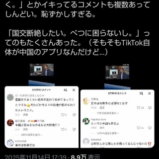 TikTokのネトウヨ「中国よ、日本にはアメリカがついてることをお忘れなく」