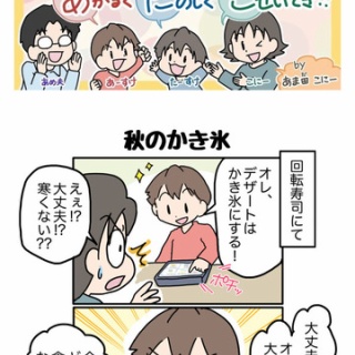 突然寒くなった!衣替えが追いつきません!そんな中で掲載されたのがこのマンガ!-----------------------------------------------------☆ご来訪いただきありがとうございます!当ブログ「こにっき」は、イラストレーターで2児の母、マンドリン弾きなあま田こにーが育児漫画や愉快な日常を描くブログです。⇒こにっきの登場人物は♪こちら♪⇒当ブログについて詳しくは♪こちら♪⇒イラストレーターあま田こにーについては♪こちら♪---------------------------------------------------------NHKエデュケーショナル様が運営する子育て応援サイト「すくコム」様にて「連載 子育てあるあるマンガ」が更新されました!●2025.11.05更新「秋のかき氷」●※画像をクリックするとすくコム様サイトに飛びます!続きは画像をクリックするかhttps://www.sukusuku.com/contents/325131↑ここからすくコム様サイトへGO!くら寿司の400円くらいするものすごく大きいかき氷に毎回のように挑戦するあーすけ君なんだけど、、流石にもう…寒くないかい…?ちなみに、私が最近食べてこりゃ美味しい!と思った回転寿司のデザートははま寿司のホットカスタードアップルパイバニラ添え!…なんだけど、このことを書くために今調べたら公式サイトによると2025年11月4日で販売終了してるじゃないかなんてことだ!!早くも再販希望だよ!!すくコム連載は毎週水曜日に新作が公開されるのでぜひチェックしてねー!☆これはピザを食べるあーすけ君の話。 ☆これはごはんを楽しみにしている?たーすけ君の話。 ☆★ブックカバー展、展示終了しました★☆私も現地に行ってみましたが壁一面ズラーっと並んだ作品は圧巻でした!展示は終了したけど「ブックカバーを買う」ことは11月9日まではオンライン通販でできるのでぜひチェックしてね!↓主催「つくしチーム」様のオンラインショップはこちら↓私の描いたブックカバーは「28番」の「ようこそ!ネズミさんと巡る本の世界」です。------------------------------------------------●ブログランキング参加中● ↑クリックするとランキングが上がる仕組みです。更新の励みになります!是非ぽちっとお願い致します!●SNSやってます● ↑アイコンをクリックしてお好きなものをフォローしてください♪●LINEスタンプ販売中!●↑クリックしてあま田こにーのスタンプ一覧へ!●お仕事一覧、ポートフォリオ●↑お仕事情報のページです。よろしければご覧ください!お問い合わせ、ご依頼はあま田こにー 連絡先アドレスconnie.draw.play☆gmail.com(☆マーク部分を@に変えてください)までどうぞ! ---------------------------------------------画像に付記しているロゴ「こにっき」はあま田こにーの登録商標です。当サイトで掲載しているマンガ、イラスト、画像などの無断使用、無断転載を禁じます。