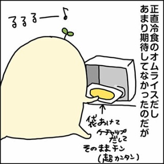 2− 61.冷凍食品のポムの樹オムライスいつものスーパーたまに変わった冷食入荷するんだけど今の冷食ってこんなに進化してるんかってくらい個人的に感動した。