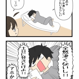 [前回の話] パパさん、右手骨折したってよ① パパさん、右手骨折したってよ② パパさん、右手骨折したってよ③ パパさん、右手骨折したってよ④ パパさん、右手骨折したってよ⑤ パパさん、右手骨折したってよ⑥ パパさん、右手骨折したってよ⑦ 鎮痛剤を処方してもらってたので、飲んではいたのですが、痛みが和らぐ程度で、実際は痛みがあったそうです。夜は痛みで寝られないかも…?と医師から言われていたそうなので、寝る前に再度鎮痛剤を飲む事に。痛くて眠れないのはかわいそうだなぁと思ってましたが、寝室をのぞくと、いびきをかいて気持ちよさそうに寝てました(;´∀`)一日怪我して病院行って…とバタバタしてたから、疲れが優先したのかもですね(。-∀-)ゆっくり休んでね~(o^^o)♪よかったらポチっと1回押してください~♪人気ブログランキング 【ブログ連載/完結シリーズ】