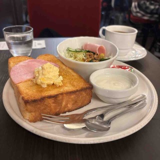 ”ローヤル珈琲店本店” ーーー 【お店について】 つくばエクスプレス浅草駅から徒歩3分ほど。 お店は飲み屋さんが連なるホッピー通り沿い。 雲一つない青空をバックに8:00からオープンしている老舗の喫茶店。 時刻は8:30ごろ。 支払いは現金のみ。 土曜日ということもあり、席は90分制。 地味に土曜日にモーニングのサービスがあること自体がありがたい。 さすがにこの時間でも店内は混み合っておりほぼ満席。 私はモーニングサービスのAsetをいただくことに。 ーーー 【味の感想】 ・Aset ¥840 トーストにハム、たまご、サラダ、ジャムにヨーグルトまでついたモーニングセット。 ドリンクはブレンドをいただいたが、自家焙煎ということもあってかめちゃくちゃ美味しい珈琲。 コーヒー単体で、パンを食べた時のような香ばしい香りがする。 苦味もしっかりとあるのでトースト等と合わせても負けないし、相性も良い。 トーストは分厚くサクふわ。 バターの香りが甘やかではちみつ塗ってるみたいに甘い、トースト単体としてもめちゃくちゃ美味しい。 ーーー 【総評】 お値段がただ安いだけのモーニングではなく、単純に珈琲もトーストも一級品。 昔ながらの喫茶店といった 雰囲気なのもよくて、居心地も非常によろし。 パンが美味しかったので、ほかのトースト系やホットサンドなんかも気になるな。 またこないと。 それではごちそうさまでした。 とてもおいしかったです。