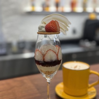 国の重要文化財である「明治生命館」。ここに昨年11月22日(土)にカフェがオープンしました。オープン当初から行こうと思っていたのですが、なかなかタイミングが合わず。本日満を持して千葉県民Tと行って参りました。東京駅から歩きました。1階、2階は見学可能。カフェは1階吹き抜け部分にあります。先ずは名前を書いてエントリー。ホテルのロビーのような雰囲気です。静嘉堂文庫美術館との位置関係がいまいちよく分からん。折角なので珈琲のほかに苺パフェも注文。映えますな。苺がめっちゃ酸っぱかったけれど、概ねおいしい。価格は2,500円(季節・数量限定)。珈琲とセットだと少しお安くなるっぽい。文化財なので火を使えないんだろうなと理解できるメニュー内容です。そして人がひっきりなしに入って来るので入口のドアが開けっぱなし状態で寒い。足元を暖かくして行く方が良いかも。食器は香蘭社製で、販売もしているようでした。話しのネタに丁度良いかも。 明治生命館の記事 【明治生命館 明治安田CAFE 丸の内】重要文化財東京都千代田区丸の内2-1-1 明治生命館 1F営業時間 10:30-18:30(L.O.18:00)定休日:月曜、火曜※Suicaやau PAYなどの各種電子マネーやQRコード決済が使えますhttps://www.attable.co.jp/cafe/meijiyasuda/https://www.instagram.com/meijiyasudacafe.marunouchi/