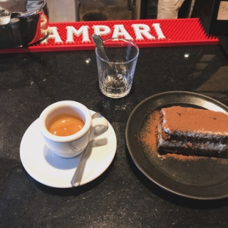 punteggiatura at Kawaramachi-MarutamachiWe don't need to visit Italy but Kyoto to enjoy the true Itarian espresso!! 【超訳】妻からエスプレッソがめちゃくちゃ美味しいと聞いて、烏丸丸太町あたりを歩いていたので、初めてお伺いいたしました。立ち飲みのイタリアンバールで、中は明るく賑わっていましたが、初めての客である私でも快く迎え入れてくださりました。うおおーエスプレッソマシンがVBM REPLICAじゃん!これはガチなやつ。エスプレッソとティラミスを注文。さっと出されたカップ、クレマがめちゃ綺麗かつクリーミーで重厚な層です。砂糖をスプーン1匙入れ、ゆっくりと砂糖がクレマの層に沈み、クレマが元に戻ったらスプーンで軽くかき混ぜ、さっと一気にいただく。ぐああああーーこれはやばい!!これ絶対ブラジル深煎りとかロブスタをブレンドしたガチ中のガチなイタリアンエスプレッソだ!クリーミーな口当たりながらカラメル的旨味を凝縮したコクと鼻を抜けるローストアーモンドのようなオイリーな香味の余韻がいつまでも続いていく、、、!またポリフェノール的渋みを伴った木の実的酸味が気持ちシャープに入って、余韻の中によいアクセントと立体感も醸し出しています。思わず鼻の穴が膨らんだ美味さですな、、しかもこれたったの200円てまじどういうことなのですかね。本当に美味しいイタリアンエスプレッソは全然苦みがきつくないんですよ、このオイリーなコク甘さの余韻と隠し味的なシャープな酸、、私はイタリアには行ったことないですけど、現地の人はこういうのをふらっと立ち飲みして覚醒してまた仕事に行くのだろうなぁ。思わずエスプレッソのおかわりを今度は砂糖を入れずそのままでも。そしてまたこのティラミスも驚愕。ティラミスってまず大前提として、使う珈琲が美味しくないと当然美味しくないわけですよ。これたぶんこのエスプレッソをベースにしてるんじゃないかと思うのですが、乳脂肪分が多いマスカルポーネと合わせてこんなにコクの二重の奥行きが広がるもんなのですね。しかもコクがしっかりしているのに滑らかでチーズとシロップの甘味が優しい。こんなティラミス初めて食べました。イタリアンエスプレッソ好きな私としてはちょっとまじで衝撃でした。今まで行ったことなかった自分を殴りたいです。裁判所前近辺はよく散歩もしたりするから、またふらっと寄ってさくっとエスプレッソをキメて気分良く一日を過ごしていきたいですね。素晴らしい京都生活の日常によりそう拠点をまたひとつ見つけられたような気がしました。烏丸丸太町近辺にお越しの方は必ず行くべきだと思います。「人気ブログランキング」にぽちっとなInstagramのほうがより更新頻度高いのでフォローのほどよしなに。 Twitterもフォローのほどよしなに昔ウェブ雑誌で書いてた連載はこちら。PORTRA『京都珈琲案内』(2016年〜2018年 全10回。リンクは第8回『第8回:確実な「美味しいペーパードリップの淹れ方」、教えます。―「間違い」だらけの珈琲の淹れ方―』)※注(1)弊ブログでは、珈琲豆の焙煎度について、『珈琲のすべて』(エイ出版社、2010年)を参考に「ライトロースト〜シナモンロースト=浅煎り、ミディアムロースト〜ハイロースト=中煎り、シティロースト〜フルシティロースト=中深煎り、フレンチロースト〜イタリアンロースト=深煎り」としています。(2)弊ブログは、筆者の、珈琲の味は「抽出法>>>超えられない壁>>>焙煎度>産地>・・・」の順で大きく変化する、という考えに基づいた記録です。また、味覚表記に関する筆者の考え方については、http://ueshima.blog.jp/archives/1079544175.htmlをご確認ください。