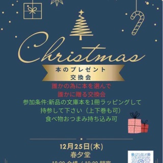 「BOOKS&DRINK 春夕堂」大人の隠れ家ブックカフェもちろん学生様のご利用も大丈夫です【本はおつまみ】がコンセプトのブック&カフェバー美味しいコーヒーやお好きなお酒と共に至福のひと時をお楽しみください因みに「しゅんせきどう」と読みます☺️読書しなきゃダメなお店ではございません😊お話しにいらっしゃる方も多いのでご了承ください🙇♀️もちろんご自分で本など持ち込んでいただいて結構ですフリーWi-Fiもございますのでお仕事などでご利用されるのもいかがでしょうか※決して会話厳禁ではございません🙇カフェバーとして気軽にご利用ください営業時間 14:00~23:00日曜日は21時マデ(連休中は連休最終日が21時閉店となります)基本的には木曜日お休みをいただきますコーヒー¥600~お酒¥600~+ブックチャージ料として+¥500いただいております※フルーツ等のおつまみ付き小倉北区馬借1-13-12-2Fにてお待ちしております【ヒブラン】さんと言う温泉施設の駐車場入り口の向かい側です。【四季丸】さんという居酒屋さんや【来RAI】さんというブティックの2階にございます非常に分かりにくい場所で申し訳ございません🙇こちらのブログ読者登録を是非お願いしますファンページのようなものですので極々まれにちょっと記事一覧オトクな情報など(悪天時の席料無料情報等)がございます🙇どうぞよろしくお願いいたします🙇~~~~~~~~~~~~~~~~~~メリークリスマス 春風ですいよいよクリスマス☺️イベント当日となりました!参加されたい方は事前にDM頂けるとすごく助かります!!私、春風見立ての甘さに定評があるのですが笑今回もまた参加者数の見立てが甘くえ、、、?一人で大丈夫???みたいな事態に、、😅どなたか18:00~21:00までお手伝いに来てくれませんか、、笑バイト代は、、、少しでも出そうと頑張るので、、、🙇♀️エプロンだけ持ってきていただけたら、、笑という訳で本日は春夕堂パーティ形式を取ります!カウンターにドリンクを買いに来るスタイルキャッシュオンです!それでなんとかやりきるしかないですねでも本の交換会本当にたのしいのでまあ大丈夫でしょう🥰お手伝いに来て下さるという方はまずはDMください😊さあ準備に取り掛かります🍀*゜それでは皆様メリークリスマス🎄🎅✨春風でした