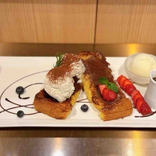 今回はフレンチトースト専門店Ivorishへ行ってきました!お店は渋谷駅から徒歩15分程。ビルの地下にあります!専門店らしく四半期毎にメニュー更新があるのが特徴。さらに季節のイベントに合わせてゲリラメニューが登場したり日々目が離せません!今回は先月からスタートしている冬メニューをご紹介します!【ショコラティラミス】2420円いつもとは少し装いの違うスタイリッシュな印象!フレンチトーストをティラミス風に仕立てた一皿です!フレンチトーストの上に乗っているのはマスカルポーネクリーム。マスカルポーネチーズが少な過ぎて香りのほとんどしない「なんちゃってマスカルポーネクリーム」が結構ありますが、こちらはしっかりとチーズの風味と舌触りが感じられます!中までしっかり染みています。しっとり、ややトロ食感。表面にはチョコレートコポー(削り)とココアクランブル。コポーが一部溶けてチョコソースの様になっています!ジャグで付いてくるのはエスプレッソソース!口の中に広がるコーヒーの香り、ほんのり感じる苦味や酸味が大人の味わい。たっぷりかけて食べると口の中でマスカルポーネクリームとココアパウダーがフレンチトーストを土台に一つになりティラミスが完成します!余談ですが、余ったソースをバニラアイスにかけるとアフォガード風になるのでオススメです!どっしり系に見えますが、アイスやフルーツの酸味も相まって重さはほとんど感じませんでした。ティラミスにおいて大切なマスカルポーネ、エスプレッソの2点を高いクオリティーで押さえてある為、食べた際に想起されるイメージが明確で満足感のある仕上がりになっています!1日15食限定なので狙って行く方はご注意ください!お店HPhttps://www.99grp.co.jp/shop/ivorish/