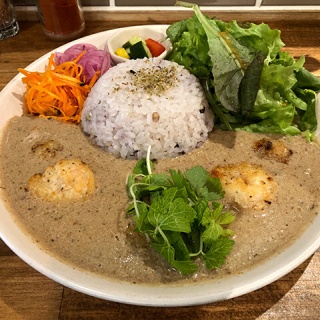 きょうは、3カ月に一度の歯科衛生士さんによる歯のメンテでしたぞぉ~!! フッ素を塗布していただいたので30分間は飲食禁止ですが、せっかく外出しているので、どこぞでランチをいただきたい。 ゆ~っくり向かえば30分ぐらいたつであろうということで、『Curry Damom』に予約を入れて、伺いましたぞぉ~!! 期間限定の「豆乳ホワイトシュリンプ」を雑穀米のSサイズ(180 g)にして、カラフルお野菜セットで。 1,650円 上からの眺望。 お店のメニューから… 「豆乳のクリーミーさの中にしっかりスパイスを感じる白いカレー。魚粉とニンニクの風味にぷりぷりの焼きエビとベビーセロリが相性抜群です!」 なんとも不思議な味ですなぁ~ 人生で初めていただく味!? とても、おいしかったです!! ごちそうさまでした!!