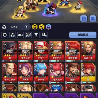 kofドットバトル今のパーティ戦力513B無課金攻略とりあえず今はサブキャラクターをLV80付近まで上げてっている所ですね🥺たぶん殺到から上げてくかも🥺山崎星1なので山崎から行くかもです🥺終わったら草薙京かも😭