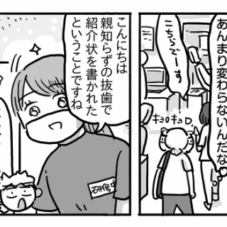 公式LINEがリリースされました!友達登録してね~♪↓友達登録はこちらから↓https://lin.ee/WYjaveG登録者2000人突破しました!ありがとうございます♪前回はこちら↓ この話を最初から読む★その⑥です~抜歯の方法は大体聞いてた通りでございました歯茎を切開して割って抜く!事前情報はあったのでまぁそうだよねと覚悟決まりましたすーちゃんが乳歯抜いたときも割ったって言ってたし……基本的に最初の診察から(描き忘れたけど説明の前に口の中の診察ありました)説明まで研修医さんがやってくれて側に指導医がいる感じでした ↑今現在、次男が歯抜けです(かわいい)この指導医にこの後わたしは大変お世話になることになるのでした次回へ続きます ★お好きな方法で読者登録してね♪★↓LINE友達登録はこちらから↓https://lin.ee/WYjaveG↓アプリでの読者登録方法↓★本格サーキットのISKさんで漫画を描かせていただいています★★新刊情報★Amazonレビュー100件超え!★4.8の高評価本当にありがとうございますTwitter(X)で2話まで試し読み公開中!こちらをクリック→★4/2新刊出ました!Amazonリンクこちら↓99%離婚 離婚した毒父は変われるか龍 たまこKADOKAWA2024-04-02電子版はこちら↓99%離婚 離婚した毒父は変われるか【電子限定カバー版】 99%離婚 モラハラ夫は変わるのか (LScomic)龍 たまこKADOKAWA2024-04-02Amazonレビューなどつけて頂けると励みになります♪ピッコマはこちら!↓試し読みも出来ますよ~♪読者登録もよろしく!★Amazonレビュー1000超えました~★ありがとうございます~!評価★4.6‼まだの方は是非~♪ピッコマではすぐ読めますー!インスタはこちら★ピッコマでは3話無料! お仕事依頼についてはこちら