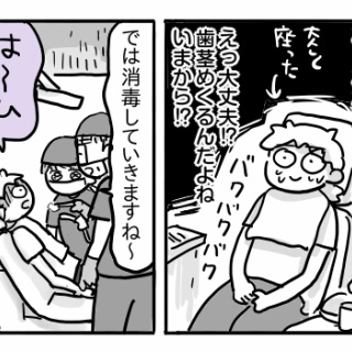 公式LINEがリリースされました!友達登録してね~♪↓友達登録はこちらから↓https://lin.ee/WYjaveG登録者2000人突破しました!ありがとうございます♪前回はこちら↓ この話を最初から読む★その㉟どうぞ~ ↑生検についてもっとちゃんとしたオペ室?みたいなところでやるんかなーなんて想像してたら全然違った!普通の歯医者さんの歯医者椅子でした! ↑かかりつけの歯医者さん別に個室ってわけでもなく今から普通に虫歯治療しますよーくらいのノリですこういうもんなんですね笑副鼻腔の中に出来た腫瘍なのに耳鼻科案件じゃないのは歯茎からアプローチするからなのかな?意外と口腔外科の範囲は広い……次回へ続きます ★お好きな方法で読者登録してね♪★↓LINE友達登録はこちらから↓https://lin.ee/WYjaveG↓アプリでの読者登録方法↓★本格サーキットのISKさんで漫画を描かせていただいています★★新刊情報★Amazonレビュー100件超え!★4.8の高評価本当にありがとうございますTwitter(X)で2話まで試し読み公開中!こちらをクリック→★4/2新刊出ました!Amazonリンクこちら↓99%離婚 離婚した毒父は変われるか龍 たまこKADOKAWA2024-04-02電子版はこちら↓99%離婚 離婚した毒父は変われるか【電子限定カバー版】 99%離婚 モラハラ夫は変わるのか (LScomic)龍 たまこKADOKAWA2024-04-02Amazonレビューなどつけて頂けると励みになります♪ピッコマはこちら!↓試し読みも出来ますよ~♪読者登録もよろしく!★Amazonレビュー1000超えました~★ありがとうございます~!評価★4.6‼まだの方は是非~♪ピッコマではすぐ読めますー!インスタはこちら★ピッコマでは3話無料! お仕事依頼についてはこちら