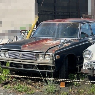 静岡某所で見つけました。3代目トヨペット クラウン「白いクラウン」ハイライフの象徴みたいにパーソナルニーズを意識したCM広告をうった3代目クラウンです。グレードはスーパーデラックスかな??トヨグライド (3速セミオートマチック)のエンブレムがありました。ストリートビューでは2021年には既にここに置かれていました。しかしその頃あったフロントバンパーが無くなっています。部品取りされたかな?いすゞ ヒルマンミンクス他府県ですがシングルナンバーが付いてました。鉄製のバンパーがこれでもかぁ!ってぐらい錆びています。ドアにはミンクス、スーパーデラックスのエンブレムがありました。リヤバンパーも結構な錆び具合ですね~ストリートビューでは、もうヒルマンミンクスはここに居ないみたいです。2代目トヨペット コロナ5代目 トヨタ クラウン 4ドアハードトップ結構奥行がある敷地なので奥にも旧車が居るかもしれません・・。(撮影はすべて敷地外からさせて頂きました。)