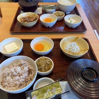 2025年9月13日この日の予報は曇り☁️時々雨☔ 雨☔時々曇り☁️⁉️とにかくお天気がよくなくて。が、土日は土砂降りでない限り、 嵐でない限り、吹雪でない限りお出かけしたいくるりん😅どっかに行こうと思ってたんやね。セブンで朝ごはん🥞スムージーが70円引きやったんでくるりんはベリーベリーヨーグルトスムージー🫐オホホ🤭女子なので。何故かその後にやよい軒😨朝ごはん食べたやん‼️なんでかは、自分でも思い出せない😰まあ、昼ごはん兼用ということで。😅モーニングやけど😳お初です〜。一回、来てみたかった。何故かというとモーニングは白ごはん食べ放題なのだ🍚注文から配膳まで全く人間の手を煩わすことなくスムーズに進んでいきます。くるりんは五穀米をチョイス🍚女子なので美容に気を使っておりますの。オホホ🤭多分50円くらいプラスしたら五穀米に変えられたと思います。くるりん、じゃこおろし。奴。生玉子。味噌汁。お漬け物。タヌ吉くん、牛皿🐂こっちのほうが美味しそうでした。ボリュームもあったしね。ほうほう。ココでご飯をお代わりするのかぁ。一口、小盛り、並盛り、中盛りから選びます。もちろん、中盛り🍚お代わり自由ですが五穀米は一杯限り。お代わりは白ごはんになります🍚 もうこの時点で2杯目🍚お漬け物も食べ放題なので一杯目はお漬け物で頂きました🙏お出汁もお代わり自由🆓すまし汁みたいで美味しい🤤お店推奨は出汁茶漬け🍚このお漬け物、めちゃくちゃ美味しかった😋食べ放題。最後は出汁茶漬け。漬け物と唐辛子で味変。4杯食べてしまった〜😁タヌ吉くんの3杯に勝った〜🙌そら、太りますわなぁ😨😰😱何が女子やねん‼️大満足なのでしばらくやよい軒には行かないと思います😜今日も見て頂きありがとうございます🙏また見に来て下さいね☺️