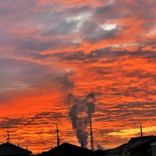 朝目が覚めてカーテンを開けたら東の空が赤く染まっていた。すぐにベランダへ出てスマホで撮影した。素晴らしい朝焼けだった。こうなるのが分かっていたら当然もっとロケーションの良いところへ出張っていただろう。久々に見た朝焼けだった。