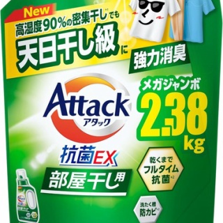 【26%OFF+定期おトク便で918円+10PT】花王 アタック 抗菌EX 部屋干し用 洗濯洗剤 液体 じめじめ密集干しでも強力消臭 詰め替え用 メガジャンボサイズ 2.38kg