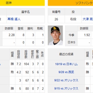 タイガース対ホークス 18:00~(甲子園)日本シリーズ