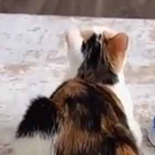真剣にテレビを見ている三毛さん。 後ろにいる猫さんを忘れていたようだ。 気づいたらこんな感じ…