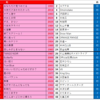 ebekoです。紅白歌合戦に内定する人たちが徐々に発表されてきた。なんだかんだ年末の風物詩として、注目されているということだ。で、今回は「私が見てみたい、理想の紅白」というのを考えてみた。……実はこのブログ始めた当初に書いてたネタでもある。それからしばらく経ったが、あのころと音楽シーンも変わってきたので、また考えてみた次第。こんな紅白だったらとりあえず見てみようかな、という人選。どどん。現時点で存命の方のみで、構成しています。(「初」とか「3」の数字は、『理想の紅白』での選出回数です)今回が3回目。3回とも選んでいる出場者はお気に入りというのがなんとなく分かるかと。あるいは本家の紅白でも欠かせなかった人(=息の長い方)。シンプルに紅組先攻、白組後攻で。歌唱力のあるトップバッター、次に若いアーティストが続き、そこから演歌も挟んだりしつつ、アニソンも登場。で雪村と森の大御所対決→工藤と米米の平成初期対決→前半トリは「悲しみソング」対決。後半は80年代ソングから始まり、恋愛の歌、中島と五木のベテラン対決。で終盤に、若手カリスマのAdoと米津を持ってきつつ、トリ前は実力は二人。で両軍はトリは「故郷に帰りたくなる歌」で締めてもらうという構成にしました。「理想」とか言っておきながら、結局バランス考えて最近の人も入れちゃうのが、冒険心のなさを表しています。でもそうしないと、おそらく70~90年代の曲に偏っちゃうしなあ。それだと当時やってた本家紅白と大して変わらない。となるとそれはそれで意味がない。なるべく幅広い世代の歌手をおりまぜた、ドリーム感のある紅白にしたいので。あり得ない対戦とかも考えてみたい。年齢差70歳対決とか出来そう。自分で作ったルールでなんだが「高齢の人を入れておかないと、そのうち入れられなくなる」という思いもあって、年の行った人をあえて持ってきたのはご愛嬌。鬼籍に入ったのは八代亜紀、中山美穂、赤い公園の津野米咲か。でも高齢だった人が意外と健在なことに驚いています。