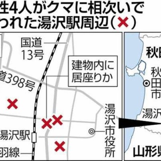 熊が4人襲い住宅に立てこもり 秋田・湯沢の中心部