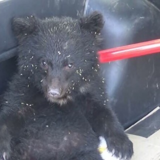 子グマを市の職員が網で捕獲 駅から約100mのやぶで発見 麻酔銃で眠らせ山の中で放獣へ 体長約50cm 長野・大町市
