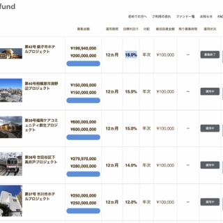 - いつもクリックありがとうございますっ!⬇︎👀他の人の意見が知りたい!そんな時は… こんにちは。グラです。なんか、久々に見たらvictory fundすごいことになっていますね。前回の記事で15%?って驚きを記載したと思いますが、「第42号 銚子市ホテルプロジェクト」では18%⁉︎もう満額集まって運用確定していますが、利回り厨としては10万円くらいでリスクを割り切って投資するのはちょっと面白そうだったな。ただ、キャピタルゲイン上振れで結果的に高い利回りになった、とかではなく募集時の利回りがとんでもなく高い設定なのはちょっと気になりますね。大丈夫なんかな。そして今回12月15日募集開始の「第43号合志市プロジェクト」!このファンドもキャンペーンも含めたらすごい利回りになっちゃいますもんね「熊本県合志市福原に位置する、世界的半導体関連企業が集積し工場用地としての需要が高まると予想されるエリアの土地を取りまとめて購入し、再販することを予定しております。今回はその第1弾として、合計約816坪の土地を投資対象としています。」●売却戦略について 「工場用地として十分な広さを取りまとめた後、工場用地として、半導体関連メーカー・サプライヤー、もしくは、デベロッパーに売却すること想定しており、すでに弊社取得単価の倍程度や、それ以上の金額で交渉が開始されております。」→ほぇ。この交渉は見えませんからね。正直わからんーと書いていたらファンド募集無くなったみたいですねぇ。その理由もわからないのでなんともです。償還実績続々っ!2021年 新規事業者爆誕!ファンドの利回りは8.0%〜12.0%!自分はvictory fundではいったん全ファンド償還済となりまして・・・浅草1丁目商業ビルプロジェクト:10.50% 1,000,000円投資・償還済浅草1丁目商業ビルプロジェクト:10.50%1,000,000円投資・償還済小平市用地収益化プロジェクト(No.1):10.00%1,000,000円投資・償還済東上野3丁目プロジェクト:10.00%1,000,000円投資・償還済小平市用地収益化プロジェクト(№4):10.00% 500,000円投資・償還済浜松町2丁目プロジェクト:10.00%1,000,000円投資・償還済大田区大森北1丁目プロジェクト:8.00%1,000,000円投資・償還済小平市用地収益化プロジェクト(№5):8.00% 300,000円投資・償還済戸田市マンションプロジェクト:10.00%1,000,000円投資・償還済浜松町2丁目プロジェクトPhase2 :12.00%300,000円投資・償還済と無事償還されています。利回りの高さ = リスクの高さは、改めてインプットしておいた方が良いかもですね。victory fundってどう?気になる方は以下の記事も参考にどうぞー!記事「【即3億】みなさんしっかりと見ていらっしゃる!」記事「【Vな10%】超久々っ!5月17日(火)13:30より先着式!」記事「【返金対応】でリスク時対応が垣間見えた」記事「【Victory】すごい…親父が熱中するわけだ」記事「気になるあのこと聞いてみた」記事「victory fundの投資のポイント!」償還実績続々っ!2021年 新規事業者爆誕!ファンドの利回りは8.0%〜12.0%!↓10%ファンド同時に4つ公開中!アップサイド配当も期待できちゃう!上場企業の運営するファンド!分配・払い戻しが爆速最短1日!インカムゲインタイプで運用期間1年以内が中心!平均想定利回りは8.0%〜と高水準!上振れ実績も…爆速会員登録必須!初号は12%+6.0%(換算)!これは祭りじゃ!平均利回り8.0%Over!10,000円から気軽に第3の不動産投資! インカムゲインタイプで運用期間1年以内が中心!平均想定利回りは8.0%〜と高水準!上振れ実績も…初号12%の高利回り案件大放出っ!毎月2ファンド募集予定!新規事業社FUNDI誕生!実質利回り10%〜 劣後出資ありキャピタルゲインの上振れも期待できちゃう新規事業者『投括』誕生!100号到達!安定したファンドリリースと2ヶ月に1回もらえる分配が特徴!【優先劣後構造】【アップサイド配当】【豊富な開発実績】!新規事業者つくるファンド登場っ!始めるならいつだって新規でHOTなタイミング!が🙆電子取引対応でもっと便利に!今ならもれなく2,000円分もらえる!総合不動産企業株式会社リバイブルが運営!初号ファンドは6.0%!最大25,000円のAmazonギフト券も!❶倒産隔離 ❷信託保全 ❸劣後出資などレベル違いな不特法3号・4号事業者“LEVECHY”!初号はなんと劣後95%!利回りは8.0%以上のファンド多数! 2018年から事業開始の老舗事業者! 利回り7.0%〜のお宝ファンドも?総合不動産企業株式会社リバイブルが運営!初号ファンドは6.0%!自社物件のファンドに手堅く投資で初号8.0%!劣後出資は40%!日本初の介護事業者が運営会社での不動産クラウドファンディングが誕生!約5.0%〜約8.3%のファンドが中心!投資に使えるポイント2,000円分もれなくプレゼント中!投資額に応じたAmazonギフト券ももれなくプレゼント!20万円以上の投資完了で5,000円の現金プレゼントキャンペーン実施中!1万円から始められる資産運用!COZUCHI協働体制でPOWER UP!誕生!記念すべき初号ファンドは10.0%!しかも運用予定期間は365日と長い! SAMURAI FUNDは「オルタナバンク」へスタートダッシュ!その名は「SOLS」劣後出資は初号30%、2号はなんと約88%!!名