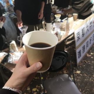 KYOTO UNIVERSITY COFFEE JUNKIES at Kyoto UniversityWe can master coffee with unflagging enthusiasm, in spite of not professional.【超訳】京都大学11月祭、いわゆるNFへ。北部祭典の模擬店に珈琲同好会が出展、しかも今日限定でネルドリップがあるとのことで行ってまいりました。以前もお見かけしたことがあるお兄さん方が模擬店テントでドリップしておられました。シングル数種がありましたが、一番焙煎度の深いと聞いた深煎りペルーでネルドリップを注文。温度は一定の高さに保ちつつ濃度は通常よりは少しだけ濃いめ、しっかりビターチョコレート感の深さとナッツ系のオイリーな甘い香りとコクの余韻、奥にマーマレードのような甘さを含む酸を感じ、それをオイリーな要素によるカドのないネル感でまとめあげた美味ですね。特に秋以降の野外のネルドリップって本当にバランスのまとめ方が難しくて、低温で濃厚に淹れて甘いコクを重視するアプローチがいわゆるネル感が一番顕著になるが、寒い野外だと逆効果で美味しくなく感じてしまいます。かといっていわゆる野外向きな高温で通常ないしは軽めくらいの濃度で香ばしさとほっと感重視で淹れるとオイリーでカドのない感じは出ないしペーパードリップとあまり差別化できないんですよね。でもこのネルドリップコーヒーは、寒い野外で飲んでも満足できる温度感は担保しつつも、低温ネルでの特長であるオイリーさ、カドのなさ、濃度があり余韻の続くコクの甘みも絶妙なバランスで感じます。おまけに温度は保っているから低温ネルではできない香ばしい香りも付き、ナッツ感あるペルーの深煎りだからより香ばしさが心地よい。ネルドリップは長きにわたって抽出したり飲んだりしてきていますが、こういうアプローチもあるのかとたいへん勉強になりました。「人気ブログランキング」にぽちっとなInstagramのほうがより更新頻度高いのでフォローのほどよしなに。 Twitterもフォローのほどよしなに昔ウェブ雑誌で書いてた連載はこちら。PORTRA『京都珈琲案内』(2016年〜2018年 全10回。リンクは第8回『第8回:確実な「美味しいペーパードリップの淹れ方」、教えます。―「間違い」だらけの珈琲の淹れ方―』)※注(1)弊ブログでは、珈琲豆の焙煎度について、『珈琲のすべて』(エイ出版社、2010年)を参考に「ライトロースト〜シナモンロースト=浅煎り、ミディアムロースト〜ハイロースト=中煎り、シティロースト〜フルシティロースト=中深煎り、フレンチロースト〜イタリアンロースト=深煎り」としています。(2)弊ブログは、筆者の、珈琲の味は「抽出法>>>超えられない壁>>>焙煎度>産地>・・・」の順で大きく変化する、という考えに基づいた記録です。また、味覚表記に関する筆者の考え方については、http://ueshima.blog.jp/archives/1079544175.htmlをご確認ください。