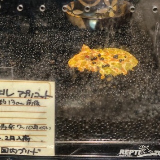 クランウェルツノガエルは色によってグリーンだのストロベリーなど、値段も若干変わりますが 大きくなるとだんだん色が変わります。ペットショップで売られてたアプリコット。アプリコットは上陸時は赤色をしているけど 大きくなると黄色くなります。この子は若干ライムグリーンも混じっているかな?そして、うちにお迎えしたユズキ♀。ちなみにお迎えした時、ペットショップでは「ライムグリーン」として売られてました。・・・グリーン??色同じやん!!wクランウェルツノガエルって大人になると親の血筋でも出るのかな?🐸