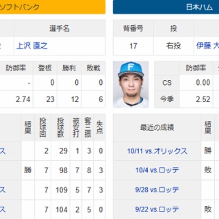 先発上沢が、先に点を取られたことで、伊藤のペースになったかもしれませんね。 6回まで投げ終えたところで、3失点なら、レギュラーシーズンならゲームを作ったように見えますが、今回はポストシーズンです。7回以降も、続投は次戦も想定しての判断だったと思います。 結果的に2アウト満塁で降板し、継投した木村光が走者一掃のタイムリーを打たれてしまいましたが、昨日までの中継ぎの連投を考えると良く持ちこたえたという風にとらえます。 その間に、甲子園では、佐藤の先制3ランが効いて先に日本シリーズを決めました。 打線も、今日は伊藤の前になかなか打ちあぐね、8回11奪三振。最後は、山崎(福)からの継投で完封リレーされました。 明日は、大関と北山の投げ合いになりました。今日、休んでた今宮と中村晃をどのように起用するか。投打がかみ合うことを願います。 よろしければ、反応していただけると幸いです。 にほんブログ村