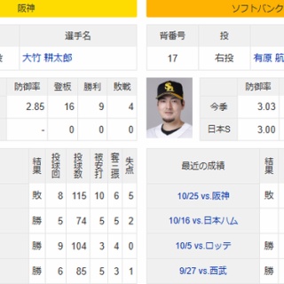 10/30(木)予告先発 大竹耕太郎×有原航平 小久保監督「もちろん決める」