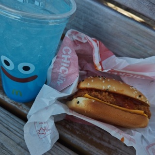 マクドナルドでドラゴンクエストとコラボのハンバーガーが期間限定で売っている。種類は・ザク切りポテト&肉厚ビーフ やみつきコンソメペッパーマヨ・ホットチリ&タルタルチキン・チーズダブルてりやきエヴァンゲリオンコラボの焼き直しではないかという批判もネットにありましたが、このパッケージをみるためだけでも買う価値がある。それにマックフィズの 爽やかヨーグルトソーダ味これは映えだから買わないといけない。ハンバーガーの中身とツーショット。3つの中で「ホットチリ&タルタルチキン」を選んだ。他のものでもよかったのだが、マクドナルド公式のXで「誰と食べる?」の問いかけでこの「ホットチリ&タルタルチキン」はフローラがお勧めしていた。フローラ一択派の私はこれにするしかないでしょう。ダク切りは別なバーガーだが、これもチキンがザクザクで美味しい。甘辛なソースもアクセントとなって良し。限定感があるバーガーでしたね。スライムがあわられた、どうするそういわんばかりの「マックフィズの 爽やかヨーグルトソーダ味」。これは見た目だけではなく。味もなかなか美味しい。何だかラムネのような(ソーダと書いてあるね)本当に爽やかな味であった。存分に楽しめました。そして、家に帰ってからも……ダークスライムがあわられた、どうするカップを持ち帰ってコーラハイを入れてみました。ダークスライムができあがりました。ヨーダとツーショットで異色のコラボです。いろいろな色の飲み物を入れて、様々な種類のスライムを作りたいですね。北赤羽・浮間地域のマクドナルドは2店舗。行ってみよう。■北赤羽駅前店■浮間舟渡駅前店【チェーン店関連記事】・中華屋で働くネコ型ロボット・チェーン中華は町中華にないものがある(日高屋 北赤羽店)・チープというのは最高の誉め言葉(鳥貴族 北赤羽店)にほんブログ村