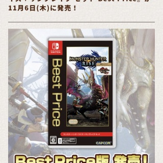 1: 2025/10/22(水) 08:20:49.90 ID:JcvzWfSV0 Nintendo Switch『モンスターハンターライズ+サンブレイク セット Best Price』が11月6日(木)に発売! モンスターハンターライズ+サンブレイク セット Best Price -Switch【Amazon.co.jp限定】特典 Nintendo Switch ロゴデザイン マイクロファイバークロス 同梱カプコン2025-11-06