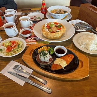 20251221ココス伊勢崎宮前店でランチ!この日、ココス伊勢崎宮前店で かみさんとファミレスランチTime!さて、ココスランチメニュー何を食べるかな?ー オ~ダ~ ー海老と あさりのクリームパスタランチセット 1,089円おろしハンバーグ &白身魚フライランチセット 869円シェアサイズ カリフォルニアタコサラダWeb(ク) 781円もみの木クレープ ココWeb(ク) 429円配膳ロボットくんが料理を運んできてくれた「はやく取ってくれにゃ~」 てか⁉ 「はいはい!」注文したランチ料理 が テーブルに揃ったところで いただきまーす!おいしそう!わたし、おろしハンバーグ &白身魚フライランチ! 洋食の満足感と和の軽さ、定番ランチwジューシーなハンバーグと サクふわな白身魚フライのコンビは最高!!大根おろしの清涼感がハンバーグの肉汁をふわりと包み込みさっぱりしているのに噛むほどに肉の旨みが広がる衣サクッ、身ふわふわの白身魚フライ‥ タルタルの酸味が午後の気分をそっと明るくしてくれるかみさん、海老と あさりのクリームパスタランチセット、カリフォルニアタコサラダを注文‥海の香りがふわりと立ち上がる 冬の午後に似合うクリームパスタw海老のぷりっとした弾力、あさりの旨味がクリームソースに溶け込み、うまっ!!カリフォルニアタコサラダは、カリフォルニアの陽気をそのまま器に盛りつけたような一皿wカリッと揚がったトルティーヤの香ばしさが最初の一口から軽やかに弾むwひんやりとしたレタスとトマトが口の中を爽やかにアボカドのまろやかさが全体を優しくまとめるツナとアボカドをやさしく練り合わせたペースト、これまさに“味の仕掛け人”サラダ全体をまろやかさわやかにwサラダを囲うトルティーヤボールにフォークを入れサラダをのっけ、サルサソースを付け頂くwトルティーヤの香ばしさが サラダを引き立てサルサソースの酸味と辛味が味を締めるう~ん最高、メキシカンロック♪GoGo⁉かみさんからの差し入れ、パスタ♪冬の喫茶店に灯る小さな明かりのようなやさしい甘さのデザートもみの木クレープ【ココWeb・(ク)】 もみの木を思わせる立体的なフォルムが見た瞬間に心をくすぐるクレープ生地はしっとり口に入れるとふわっとほどけ、ホイップは甘さ控えめベリーの酸味がアクセント!季節の移ろいをそっと感じさせてくれるココスの期間限定スイーツ!さて、7月に購入した福袋の中に入っていたお食事券の期限が今年いっぱいこれを使わなきゃ、すっかり忘れてたぜ食事券3000円分を消化! 今年中にもう一度こなきゃだ支払いは楽天Payでwー おまけ ー店内のBEATLESガチャで‥こんなの(σ・∀・)σゲッツ!!