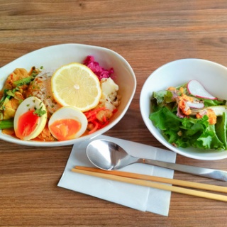 日替わりキッチンむこがわに来ましたよ!前に来たあと、すぐに近いくらいの時期に、次の予約を入れていました!日替わりキッチンむこがわしみず前回はアメリカン!そして今回は、中華だとか!基本、中華は好きなので、楽しみです!お店前に!写真を撮ってると、お店の奥さんが出てきてくれました!でも、写真を撮ってる途中だったので、先に入ってもらいます!うわっ!ほぼ満席だ!写真を撮れないので、前の写真を適用!入り口横の席を取ってくれています!外に向かう席です!でも、写真などに気を使わなくて済むから、ここがいい!お水を運んできてくれます!その際、前にも来ていることは、わかっていてくれて、写真の許可も許してもらってます!今回は、・ またまたちょこっとずつの中華膳 ¥1500来る前に見ていた写真で、ワクワクしていたんですよね!(^O^)内容は、・ 豆腐焼売・ ひとくち麻婆茄子・ きのこと白菜のオイスター風味・ きゅうりとくらげのピリ辛和え・ 揚げ春雨のサラダ・ 油淋鶏・ 胡麻ラー油スープ・ XO醤あんかけ炒飯と、なかなかな品数でしょ!前にあるモニターに、日替わりキッチンのお店紹介が出ています!それを見ながら、待つことしばし、きました!お~っ!あんかけ炒飯が、グツグツいってる!石鍋に入ってるので、「熱いから気を付けてくださいね!」と、で、スープ!あと、お皿にお料理たちが並んでますね!それらを、見ていきましょう!向こうから、油淋鶏、揚げもちのようなせんべいが添えてあります!サラダ!小さな器にはそれにかけるドレッシングが、その横はくらげ!手前に、キノコと白菜、で、おナスは麻婆で、レンゲに、焼売ですが、このレンゲでチャーハンをいただく為、先に焼売を食べないと、一歩目が進められないんです!写真を撮ってるうちに、炒飯の餡のグツグツがおさまってました!いただきます!で、やはり焼売から・・・グリーンピースはダメだけど、枝豆は好き!豆腐だと言われないとわからない!で、スープを!品書きを見てなかったから、「このスープ、えらい担々麺みたいな味すんなぁ!」って思ってたんです!レンゲが空いたところで、炒飯を!熱っ!メッチャ熱い!さっきまでグツグツいってたのを、忘れてました!(^-^;あんかけのチャーハン、そこらの中華屋さんに負けてません!美味しい!油淋鶏を、衣カリッと、中ジューシー、って、フレーズがぴったりはまります!タップリねぎのソースが、よく合ってますね!じっくりと火を通した白菜ときのこ、上にラディッシュが乗っていて、しんなりと柔らかく、これは白ごはんに合いそう!甘酸っぱいクラゲはキュウリと一緒に!なんだろう?シソのような味がするんだけど・・・?ご飯を!石焼きだから、下におコゲが!(^^)/おナス!麻婆だけど、食べ終わったら、下にひき肉が残っちゃうのは、どうしよう!(^-^;油淋鶏は、小皿だけど、量がしっかりとあり、5切れくらいあります!小さく切った花びらのようなニンジン!これ、どうしたらいいの?残すのは申し訳ないしなぁ・・・でも、摘まむの困難だよなぁ!(^-^;青梗菜が上にあったので、油淋鶏と一緒に!揚げた餅のせんべいも、油淋鶏のソースでしなっと、まだまだ熱い、炒飯を食べきり、最後にサラダにドレッシングをかけます!揚げたレンコンや、焼いたカボチャなども、しっかりとした味で、全部美味しかった!ただ、トマトとレモンは残しちゃいましたけどね!ごちそうさま!帰りにレジに向かうと、来月のメニューが載ってました!来月は、和食になるみたいですね!また予約しておかないと・・・(^^)/☆;+;。・゚・。;+;☆;+;。・゚・。;+;☆;+;。・゚・。;+;☆日替わりキッチンむこがわしみず西宮市高須町1丁目1-1インスタにて、出店日などの詳細が記載されてます!Instagram☆;+;。・゚・。;+;☆;+;。・゚・。;+;☆;+;。・゚・。;+;☆