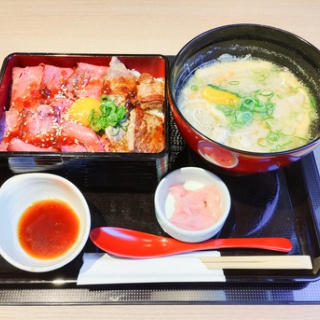 名古屋市守山区桜坂に1月オープンした和食さと 守山志段味店を訪れてみました。小幡緑地公園から竜泉寺を経て東谷山方面までつながる志段味街道沿いで、東名高速の守山スマートインター近くのカインズやアルペンモール守山志段味などの商業施設が集まるエリアで、カインズ 名古屋守山店の駐車場敷地内にお店があります。志段味街道と面するカインズ 名古屋守山店の駐車場北西端にある交差点(荒田)付近にお店を構えて、お店横に立てられたポール看板が目印です。駐車場は、敷地内のカインズ駐車場の広大なスペースが利用できます。和食さとは、リーズナブルなメニューから季節にちなんだ懐石料理まで幅広い和食を中心に扱う、和食チェーン店としておなじみのお店です。今回オープンした守山志段味店は、国内201店舗目の出店となります。店内は、家族連れなどの小グループのお客さんが利用しやすいボックス席が中心となります。ゆっくりお食事ができるように配慮された空間です。多くの飲食店を展開する大手チェーン店のお店らしく、店内の間取りも整然とした配置で、すっきりした空間造りが印象的です。店内奥には、ボックス席よりもさらにプライベート性を重視した、入口をカーテンで覆った半個室の客席もあります。オーダーについては、基本的にタブレット端末にて操作し選択し送信する方式です。なお、お茶や水の給水はセルフコーナー、食事の配膳はロボットにての提供となります。メニューは、平日or土日祝、ランチorディナーごとにメニュー内容が異なります。平日のランチには、お昼の選べるさと和膳など、お得感ある、定食、丼物、麺物といった、バラエティーに富んだメニューがお得にいただけます。また季節の美味 四季めぐりと名付けられた季節メニューもあり、訪れたときには、蟹やイクラなど旬の食材を使用した四季めぐり膳などの冬にぴったりな料理がいただけるメニューが用意されています。ほかのメニューについては、オフシャルサイトを参照→コチラランチメニューより、ローストビーフ&ステーキ膳(1703円)、具たくさん豚汁(+330円)にします。※価格については、平日ランチの価格となります。ローストビーフ&ステーキ膳は、ご飯の上にローストビーフと牛ステーキ、そして卵黄が載せられています。ローストビーフは柔らかくジューシーな食感で、一緒にかけられたタレや卵黄と絡めながら、温かいご飯とともに美味しくいただけます。牛ステーキは、ローストビーフとは対照的に噛み応えのある肉感で、肉肉しい旨みがじっくり味わえます。具たくさん豚汁は、豚肉に加えて玉ねぎ、かぼちゃ、青ネギの具がたっぷり含まれて、白味噌ならではのまろやかな味わいが楽しめます。東名高速の守山スマートインターから近く、多くの店舗が集まる志段味街道沿いに、和食レストランチェーンとしておなじみの和食さとがオープンしました。買い物などで近くを訪れたときには、ランチなどで立ち寄ってみたいお店です。