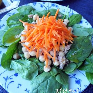 EatingWellの抗炎症・抗酸化 7日間の食事プラン 第一日の昼食です たんぱく質たっぷりで主食になります プランでは一人分の量ですが 我が家ではこの2/3を一人分としました Mason Jar Power Salad with Chickpeas & Tuna(ひよこ豆とツナのパワーサラダ) 一人分 (我が家ではこの2/3 適量で) 🔴ケール 小さく刻んで 75g ベービーほうれん草で代用 🔴ツナ缶 70g 🔴茹でたひよこ豆 1/2缶 🔴人参 1本 千切り ハニーマスタード・ドレッシング 🔴ニンニク 1片 すりおろし 🔴酢 大さじ1 🔴ディジョンマスタード 小さじ1+1/2 🔴蜂蜜 小さじ1/2 🔴塩 小さじ1/8 🔴胡椒 🔴エキストラバージンオリーブオイル 65g ツナがとてもサラダに合うことと サラダドレッシングが美味しい・・・のでヘルシーなのにとても美味しいサラダでした ツナは半分量で作りました これからサンドイッチが面倒でサラダだけにしたい時は ツナとひよこ豆を入れることにします こちらで応援してね! 嬉しいです