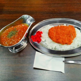 名古屋市守山区大森に9月オープンしたDOERA CURRYを訪れてみました。名鉄印場駅近くの東名高速と交差する地点から西へ向かった瀬戸街道沿いで、焼き鳥店の美濃路大森店から道路を挟んだ向かいにあるビル1階にお店があります。同じビル1階には、ほかに美容サロンやベトナム食品店などもテナント店舗入り、そのベトナム食品店の西隣にお店を構えます。入口上のオレンジの看板に記された「毎日カレー~」につながるように、老若男女問わず食べやすく、癖になるカレーライスを提供したいとの想いで始められたカレーライス専門店です。お店専用の駐車場は、提携駐車場も含めてなく、車で訪れる際には近隣のコインパーキングを利用することになります。ちなみにお店前の瀬戸街道向かいには、30分200円にて駐車できるコインパーキングがあり便利です。店内に入ると、渋みが伝わってきそうなレトロ雰囲気で、奥行きのある空間にはカウンター席が設けられています。店内の奥より入口側を眺めると、逆光となる入口外からの自然光による白に近い透明色と、店内の温かみのある電球色の灯りが互いに相まって、ノスタルジックな空気感を醸し出しています。そんな店内空間になじむように、お店を切り盛りされるマスター好みのアメカジのビンテージものである、ジーンズやジージャンが壁に掛けてあります。アメカジにつながるポップアートな絵画にも造詣をお持ちみたいでで、カレーライスにちなんだ遊び心が伝わってきそうなアート作品も展示されています。またカレールーを提供するときに使う銀色のソースポットもアート作品の横にある棚に並べられて、カレー専門店らしい佇まいを演出しています。レギュラーメニューでは、日本で老若男女問わずに親しみが持たれるようなジャパニーズスパイスカレーを意識したカレーライスとカツカレーライスのみを扱い、追加のトッピングとしてカツとチーズ、増量できる大盛ごはんと大盛ルー、さらに辛さは1辛~5辛(基本は0辛)まで指定できます。また週替わりの今週中カレーとして、訪れたこの日はエビフライカレーが用意されています。カツカレーライス(1400円)にし、辛さは2辛(選択可)でお願いします。カレールーと、カツが載せられたライスについては分けての提供となります。昔ながらのカレーライスがなじみ深い銀皿には、福神漬けも添えられたライスの上に、揚げたてのカツが載せられています。カレールーは、銀色のソースポットに入れられています。見るからにスパイシー感が伝わってきそうな、仕上がりのカレールーです。銀色のソースポットからカレールーをライスにたっぷり注ぎ、カツカレーライスを完成させてからいただきます。挽肉や野菜などをじっくり煮込んで仕上げたことがわかるマイルドながらもコクがあり、スパイスの香ばしさが印象的なカレールーです。基本の0辛はまったく辛くないそうで、辛さが苦手な方にとっても親しみを盛られるような味とのことです。カレールーは追加のトッピングより加えた辛さが旨みをより引き立て、カリッとした揚げたてのカツと重ねながら美味しく味わえます。尾張旭にも近い守山区大森に、クセになる素直な旨さが魅力のジャパニーズスパイスカレーの専門店が誕生しました。カレー好きな方にとっては、その旨さを求めて訪ねてみたくなるお店です。