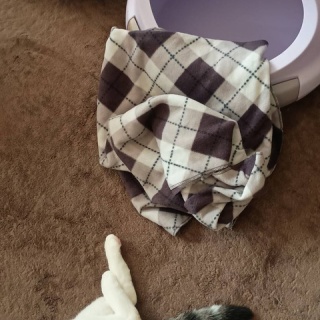 久々に床でくつろぐ姿。と、ボールの四角いモノ作りました。
