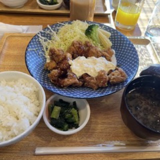 新年始まりのバレーの練習に参加しました。練習後に忘年会をしなかった代わりの新年会をやりました。近くの「和食レストラン・天狗」です。日替わりランチの中から、黒酢のチキン南蛮(税込み990円)をチョイス。タルタルソースもたっぷりかかっています。チキン南蛮も美味しかったのですが、添えられたキャベツサラダもとても美味しくて全部残さず食べました。(笑)おなかもいっぱいで満足、満足。このお値段でこのランチは、お得感いっぱいだなと思いました。なんだか今年も元気いっぱい、頑張れそうです。