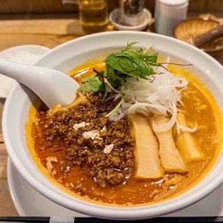 胡麻が決め手。年末から治療していた奥歯が完治して、30分は飲食不可なので駅から少し歩いて時間を稼ぐランチ。「麺処 凪」さんに8年ぶりに来てみました。メインの担々麺を食べていないことに気付いての訪問です。帰宅後に今日の話しをしたら、当時一緒に行ったカミさんも8年前の美味しさを覚えていました。駐車場は出縄歯科医院隣りにあるようです。路上駐車はやめましょう。店内はカウンター席のみ。デザインはカジュアルでポップで綺麗です。メインメニューです。アサヒスーパードライ中ビン(650円)を注文しました。すると店主さんから金胡麻という胡麻を渡されました。着丼するまでに擂ってくださいとのこと。店主さん曰く、この胡麻をかけた後が担々麺の完成形だと。スリスリして待ちます。担々麺(900円)、ひとくちライス(60円)を注文しました。担々麺スープ自体は僕の中で勝手に言ってる青湯系でサラッとしています。まずは金胡麻を入れずに一口。ちょい酸っぱみを感じるキリッと締まったラー油味。辛さはそんなになく、旨味のあるスープは進みます。擂り金胡麻を振りかけると一気に香ばしい香りが丼内外に広がり、甘みとコクが加わります。素晴らしい。炸醤肉が大量に入っているのは嬉しいですね。大量のスライス玉ねぎの甘さで味のバランスがとれています。メンマは太く、ジューシーでサクサク。軽い味付けが合い、食感が心地良いです。麺は多加水角打ち中太麺若干ウェーブ。透明感があり、ツルモチ食感。担々に合いますし、それ自体美味い麺です。今日はまだ終わりません。今やまるよし、元々は炎という担々麺店で初めて経験した最後の一口ライス投入。久しぶりですね。これが好き。このライスで肉とナッツとスープを最後まで楽しめます。ああ、ごちそうさまでした!-----麺処 凪神奈川県平塚市松風町21-19