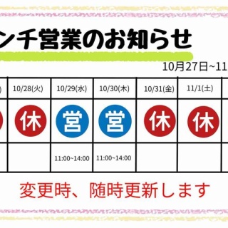 来週のランチ営業のお知らせ。明日ばえん祭出店するので月曜日は片付けのためお休みします。火曜日に仕入れ準備をするのでランチ営業は水曜日からになります。